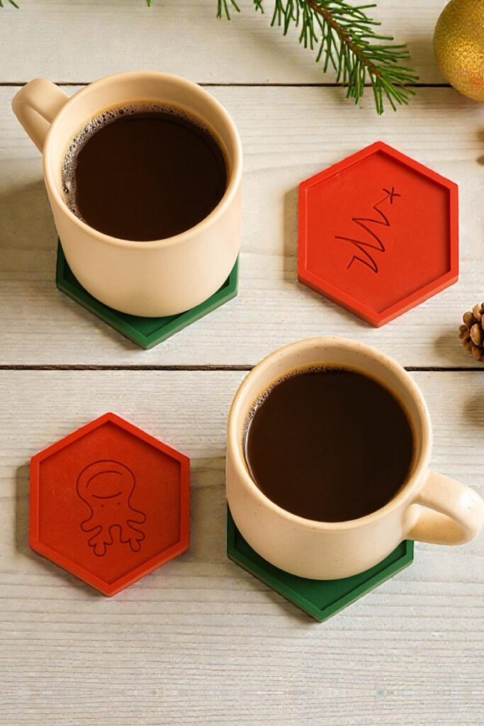 This coaster is crafted from 47g of upcycled plastic waste, giving new life to discarded materials through creativity.