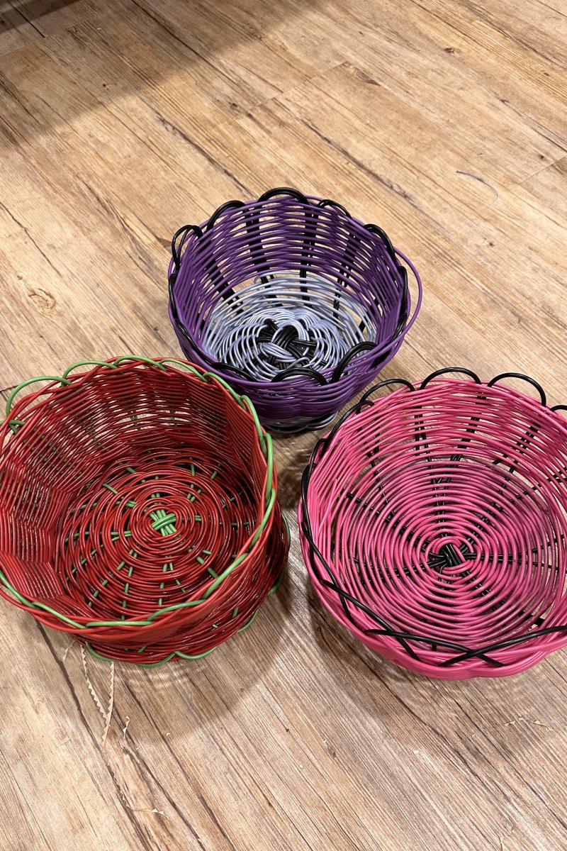 This weave basket is beautifully handcrafted from upcycled plastic waste, skillfully transformed into a functional and stylish piece. Each basket is made by a community of women, who turn discarded materials into purposeful design through traditional weaving techniques.
